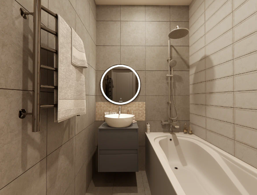 Особое внимание было уделено ванной комнате и санузлу — пространствам, которые задают тон каждому утру и вечеру. В отделке «Бизнес» стены и пол оформлены керамогранитом натуральных оттенков с декоративными элементами: гладкая текстура и монохром визуально расширяют пространство и создают атмосферу спокойствия. В отделке «Комфорт» используются современные панели «Гибкий мрамор», передающие эстетику натурального камня и создающие мягкое, расслабляющее настроение. В каждой ванной установлены электрические полотенцесушители и системы подогрева пола, чтобы каждое утро начиналось в тепле и комфорте.
